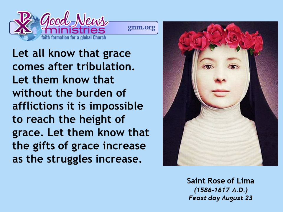 Let all know that grace comes after tribulation. Let them know that without the burden of afflictions it is impossible to reach the height of grace. Let them know that the gifts of grace increase […] Read More