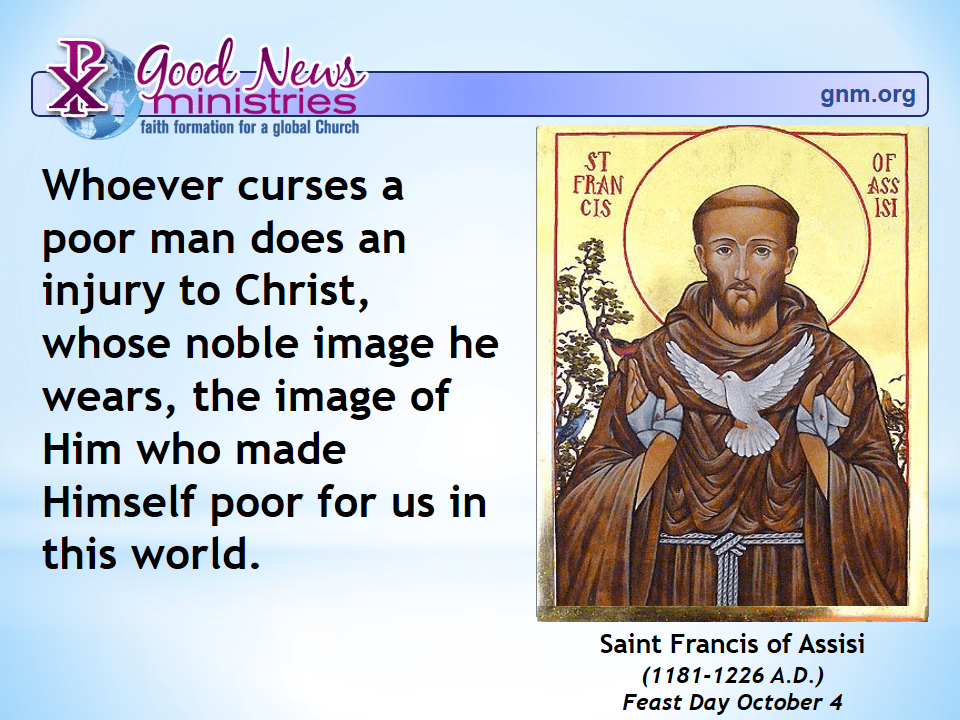 Whoever curses a poor man does an injury to Christ, whose noble image he wears, the image of Him who made Himself poor for us in this world.