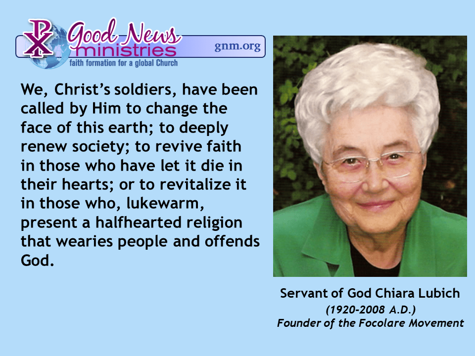 We, Christ’s soldiers, have been called by Him to change the face of this earth; to deeply renew society; to revive faith in those who have let it die in their hearts; or to revitalize […] Read More