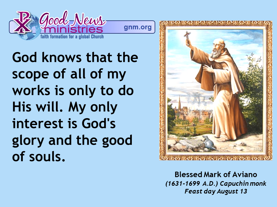 God knows that the scope of all of my works is only to do His will. My only interest is God’s glory and the good of souls.