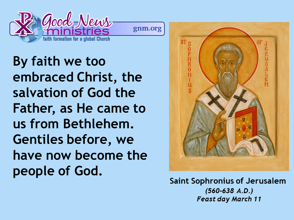 By faith we too embraced Christ, the salvation of God the Father, as he came to us from Bethlehem. Gentiles before, we have now become the people of God. (560-638 A.D.) Feast day March 11