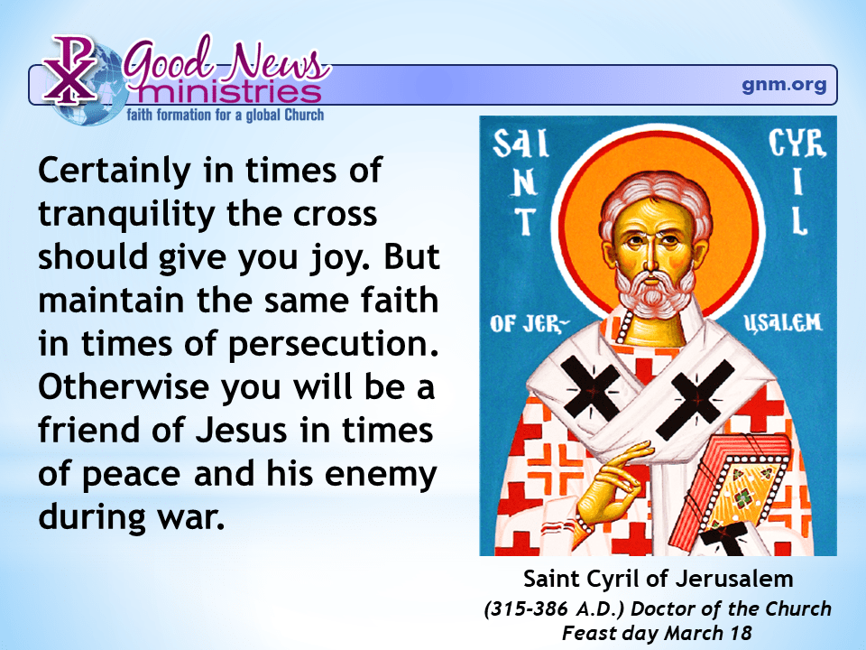 Certainly in times of tranquility the cross should give you joy. But maintain the same faith in times of persecution. Otherwise you will be a friend of Jesus in times of peace and his enemy […] Read More