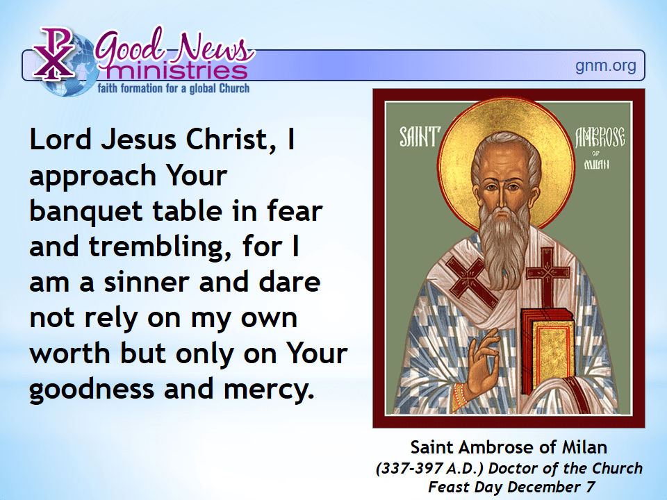 Lord Jesus Christ, I approach Your banquet table in fear and trembling, for I am a sinner and dare not rely on my own worth but only on Your goodness and mercy.