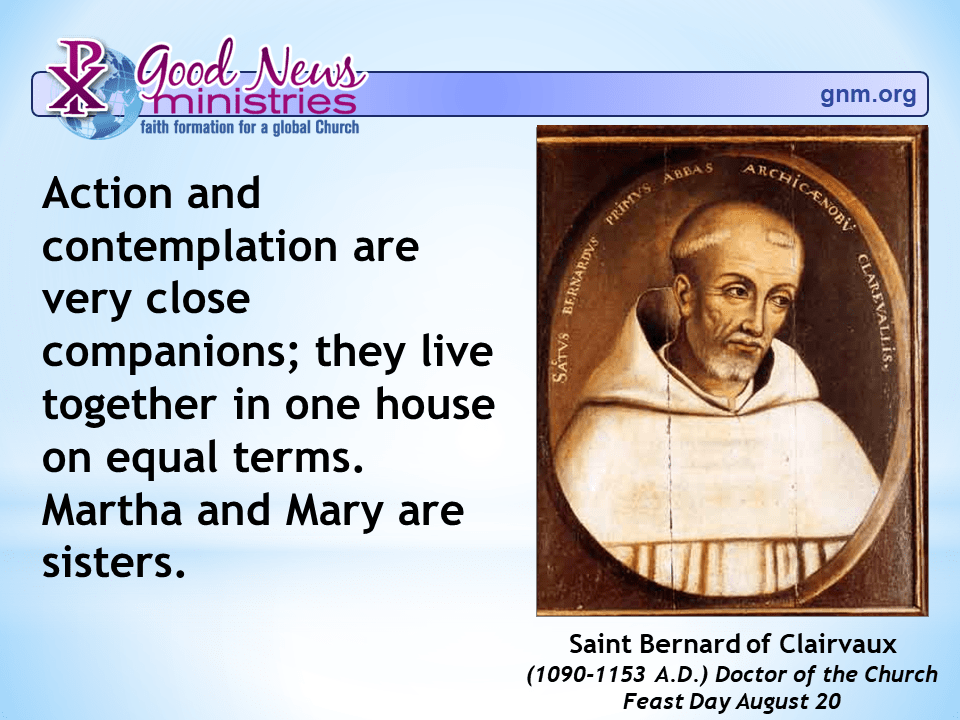Action and contemplation are very close companions; they live together in one house on equal terms. Martha and Mary are sisters.