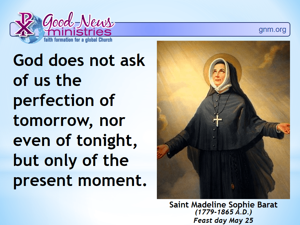 God does not ask of us the perfection of tomorrow, nor even of tonight, but only of the present moment.