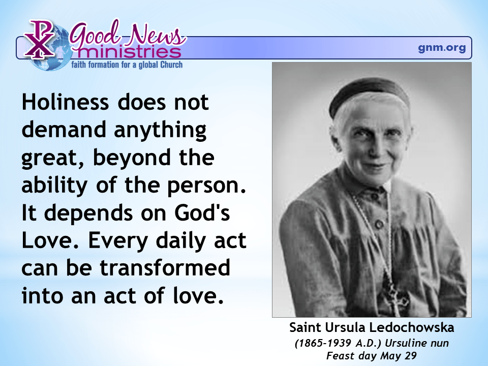 Holiness does not demand anything great, beyond the ability of the person. It depends on God’s Love. Every daily act can be transformed into an act of love.