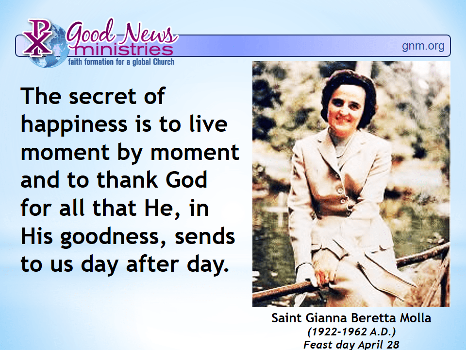 The secret of happiness is to live moment by moment and to thank God for all that He, in His goodness, sends to us day after day.