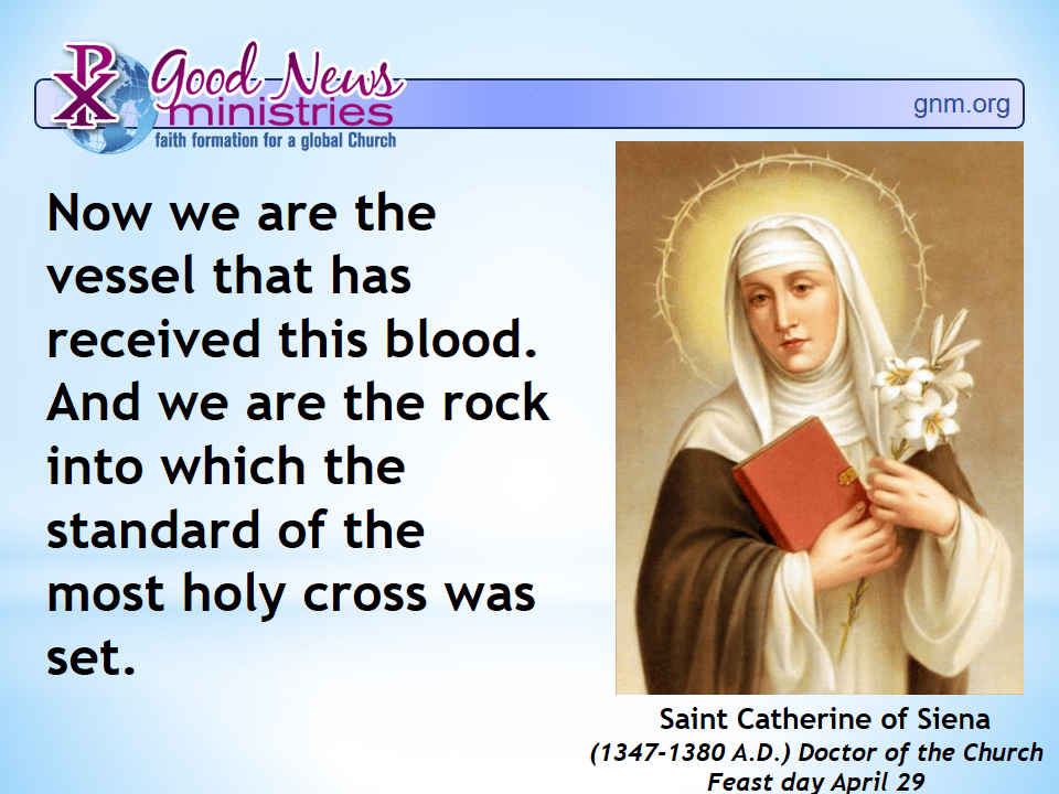 Now we are the vessel that has received this blood. And we are the rock into which the standard of the most holy cross was set.