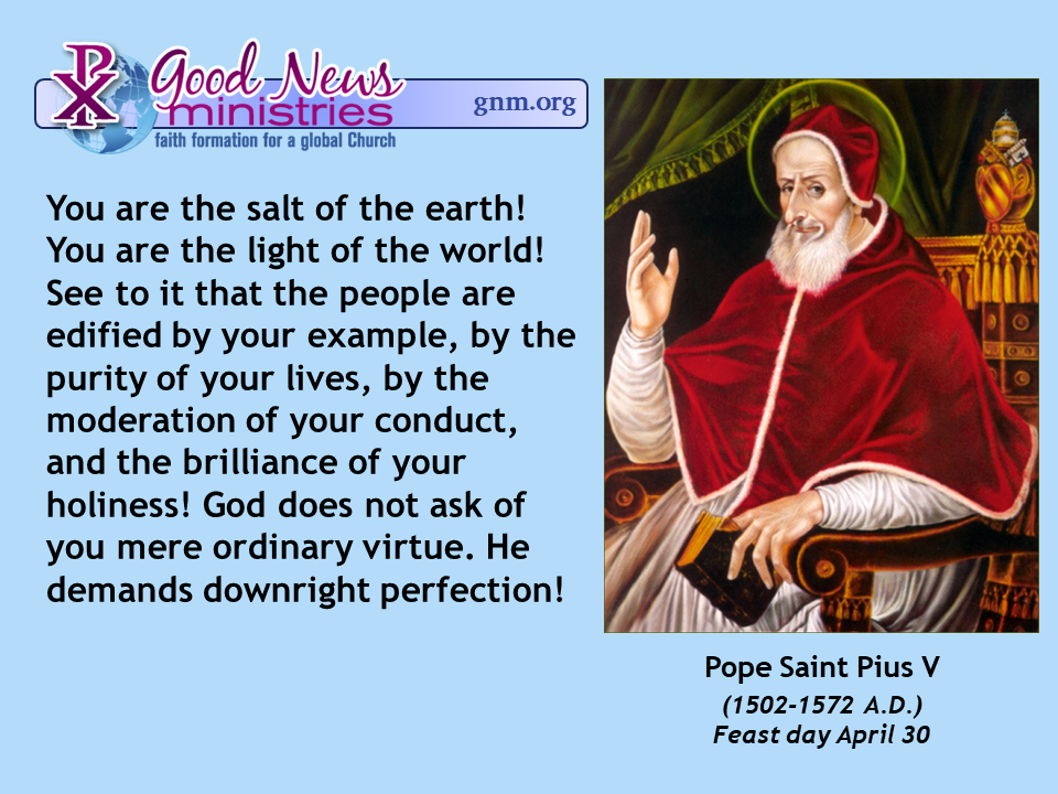You are the salt of the earth! You are the light of the world! See to it that the people are edified by your example, by the purity of your lives, by the moderation of […] Read More