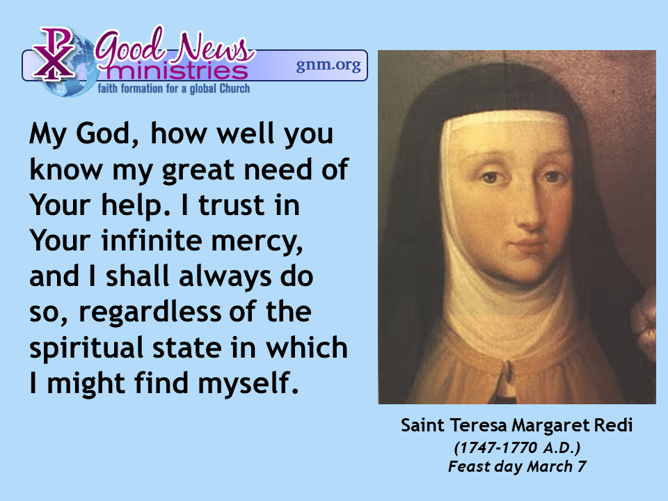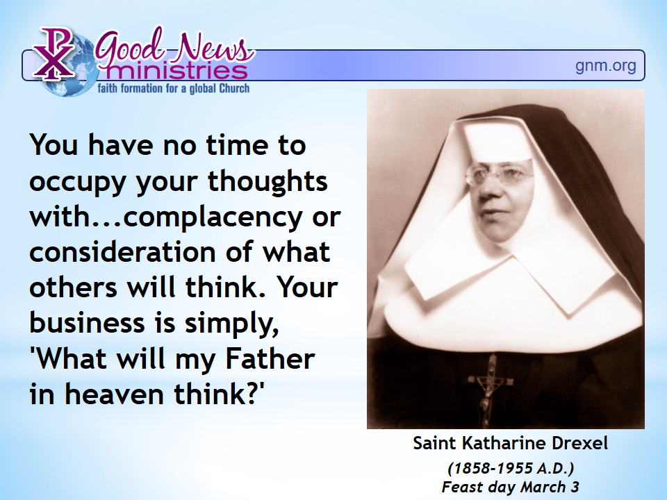 You have no time to occupy your thoughts with… complacency or consideration of what others will think. Your business is simply, ‘What will my Father in heaven think?’ (1858-1955 A.D.) Feast day March 3