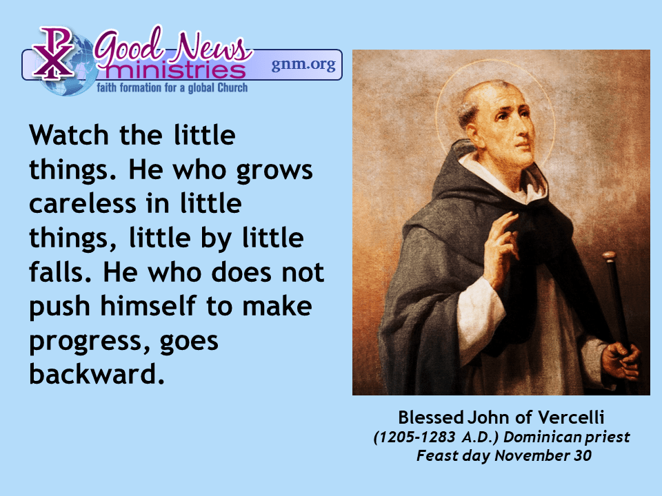 Watch the little things. He who grows careless in little things, little by little falls. He who does not push himself to make progress, goes backward.