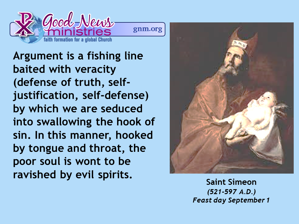 Argument is a fishing line baited with veracity (defense of truth, self-justification, self-defense) by which we are seduced into swallowing the hook of sin. In this manner, hooked by tongue and throat, the poor soul […] Read More