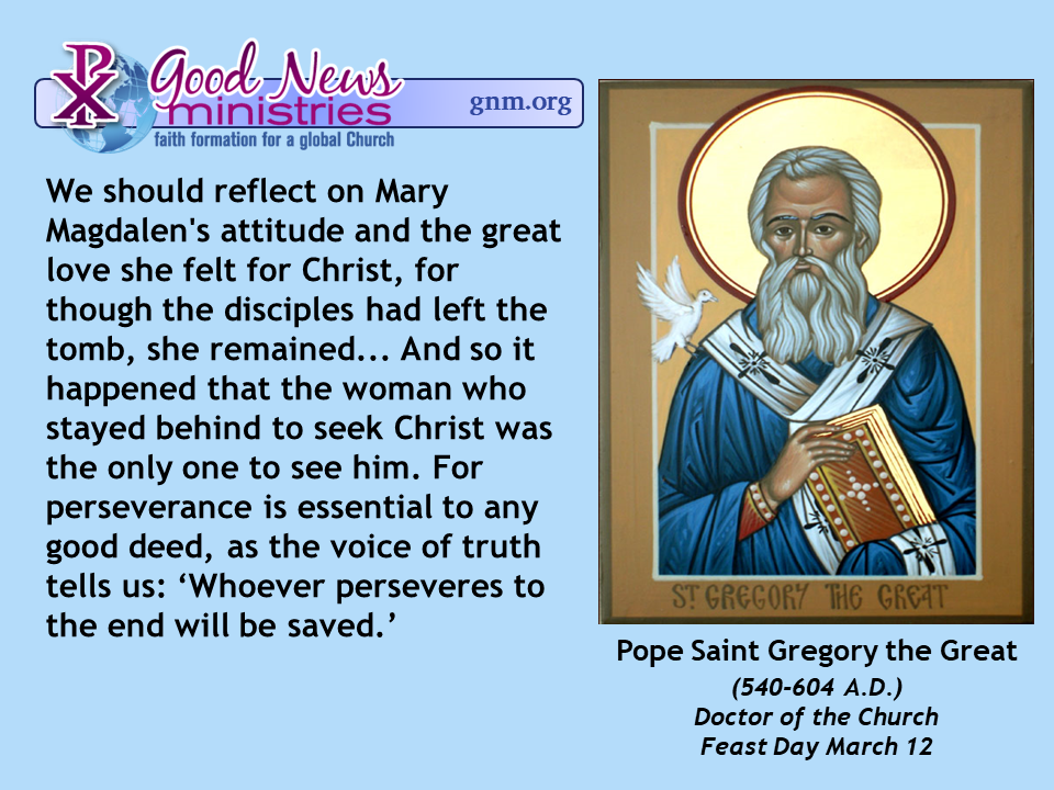 We should reflect on Mary Magdalen’s attitude and the great love she felt for Christ, for though the disciples had left the tomb, she remained … And so it happened that the woman who stayed […] Read More