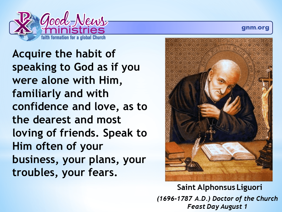 Acquire the habit of speaking to God as if you were alone with Him, familiarly and with confidence and love, as to the dearest and most loving of friends. Speak to Him often of your […] Read More