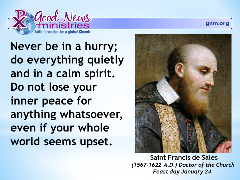 Never be in a hurry; do everything quietly and in a calm spirit. Do not lose your inner peace for anything whatsoever, even if your whole world seems upset.