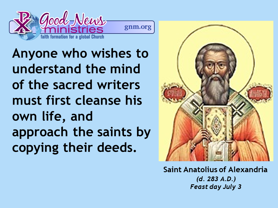 Anyone who wishes to understand the mind of the sacred writers must first cleanse his own life, and approach the saints by copying their deeds.