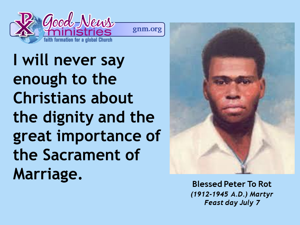 I will never say enough to the Christians about the dignity and the great importance of the Sacrament of Marriage.