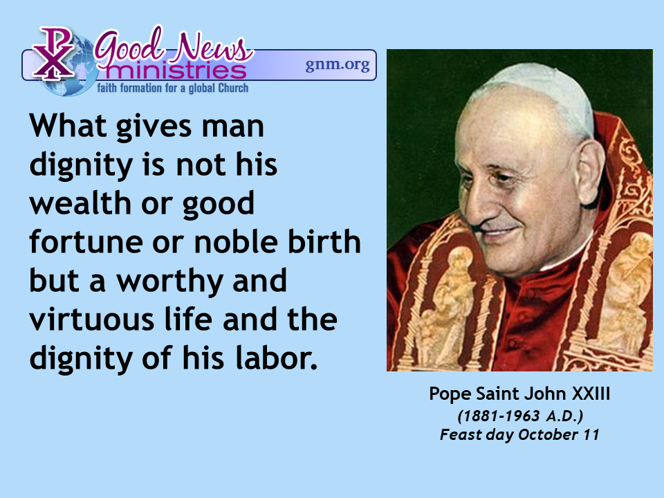 What gives man dignity is not his wealth or good fortune or noble birth but a worthy and virtuous life and the dignity of his labor.