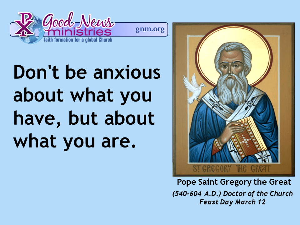 Don’t be anxious about what you have, but about what you are. (540-604 A.D.) Doctor of the Church. Feast day March 12