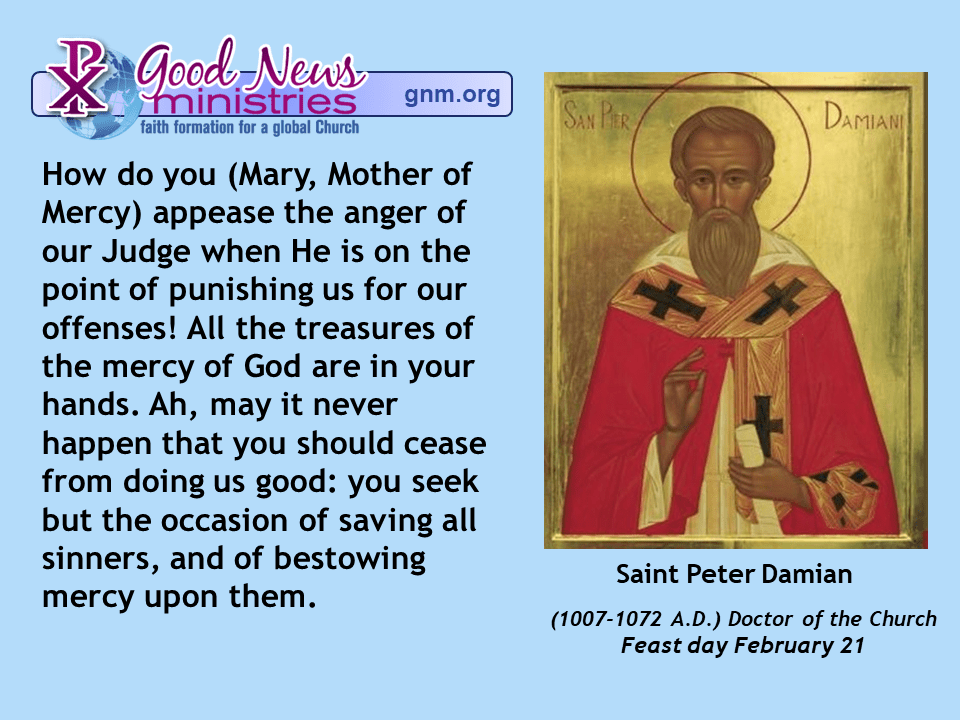 How do you (Mary, Mother of Mercy) appease the anger of our Judge when He is on the point of punishing us for our offenses! All the treasures of the mercy of God are in […] Read More