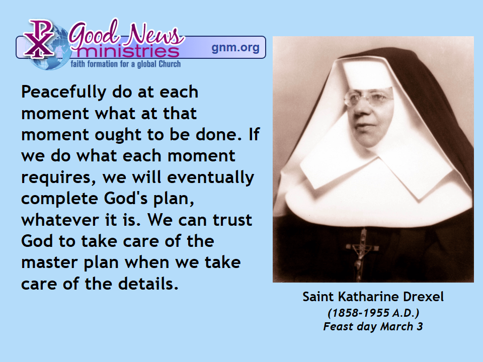 Peacefully do at each moment what at that moment ought to be done. If we do what each moment requires, we will eventually complete God’s plan, whatever it is. We can trust God to take […] Read More