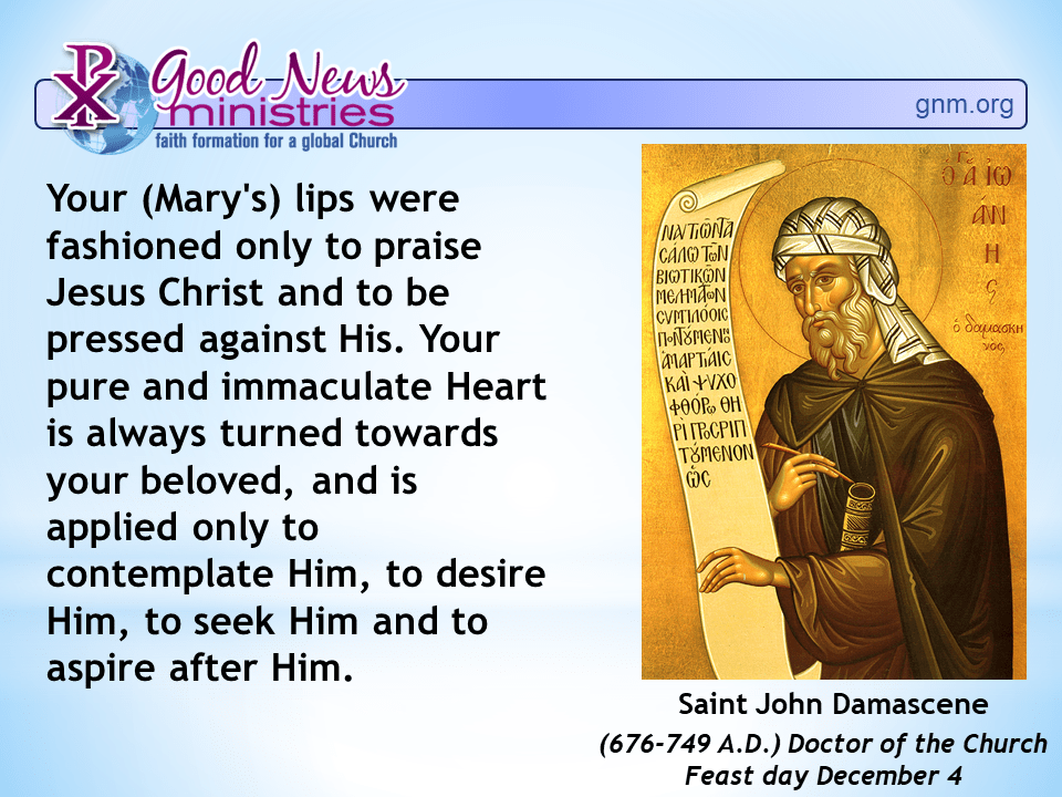Your (Mary’s) lips were fashioned only to praise Jesus Christ and to be pressed against His. Your pure and immaculate Heart is always turned towards your beloved, and is applied only to contemplate Him, to […] Read More