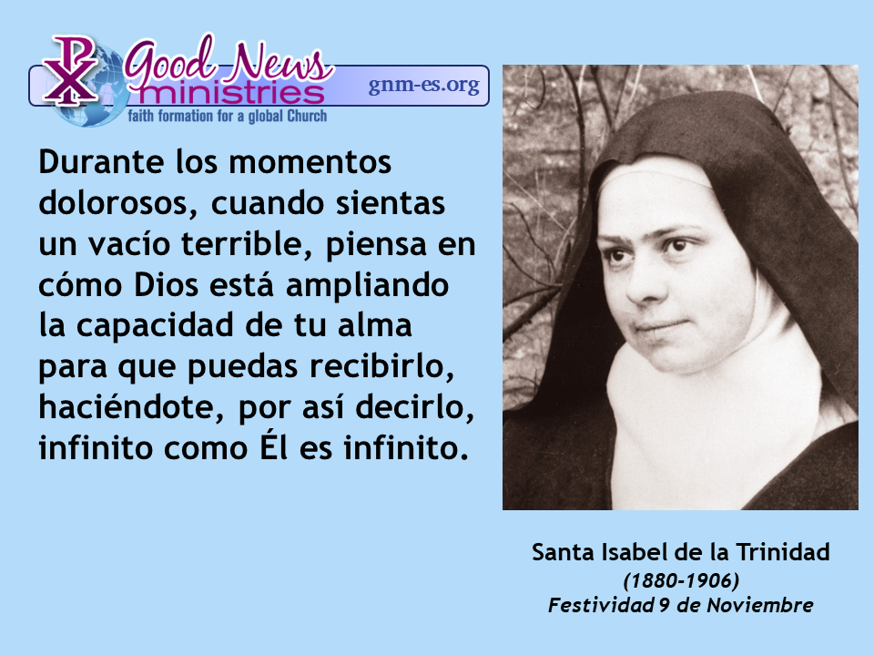 Durante los momentos dolorosos, cuando sientas un vacÃo terrible, piensa cómo Dios está ampliando la capacidad de tu alma para que puedas recibirlo, haciéndote, por asà decirlo, infinito como él es infinito.