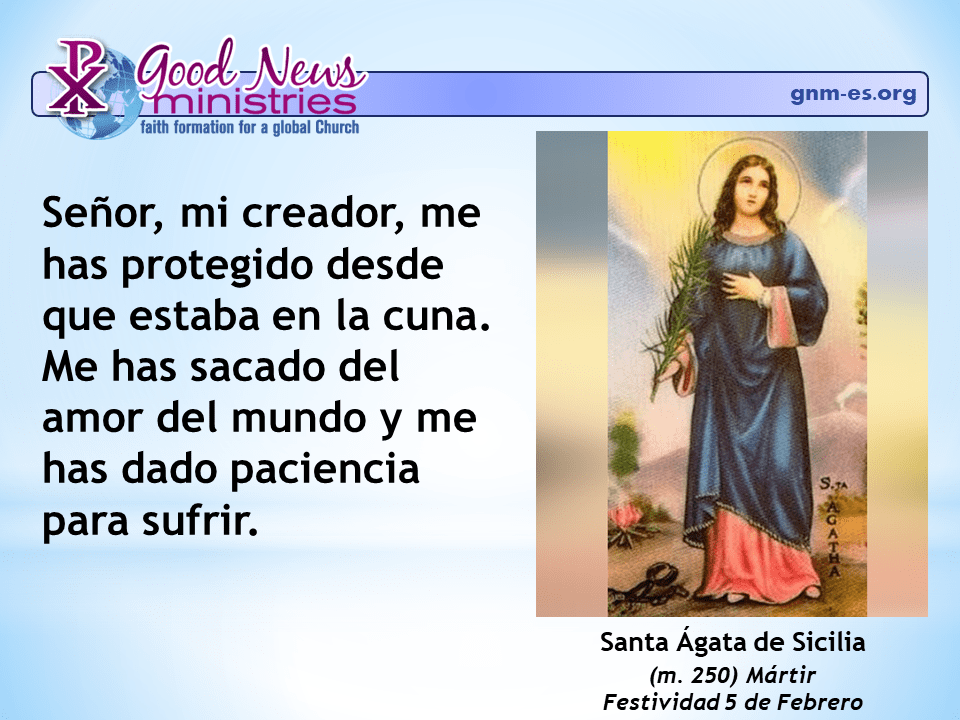 Señor, mi creador, me has protegido desde que estaba en la cuna. Me has sacado del amor del mundo y me has dado paciencia para sufrir.