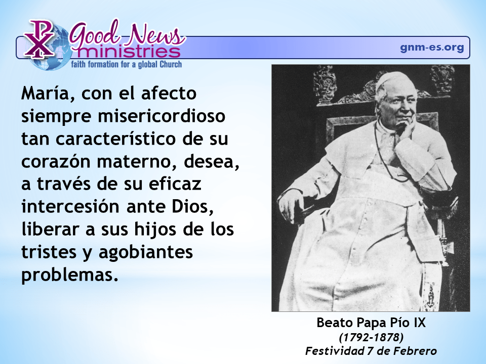 María, con el afecto siempre misericordioso tan característico de su corazón materno, desea, a través de su eficaz intercesión con Dios, liberar a sus hijos de los tristes y agobiantes problemas.