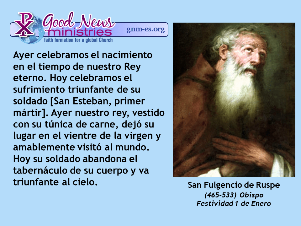 Ayer celebramos el nacimiento en el tiempo de nuestro Rey eterno. Hoy celebramos el sufrimiento triunfante de su soldado [San Esteban, primer mártir]. Ayer nuestro rey, vestido con su túnica de carne, dejó su lugar […] Read More