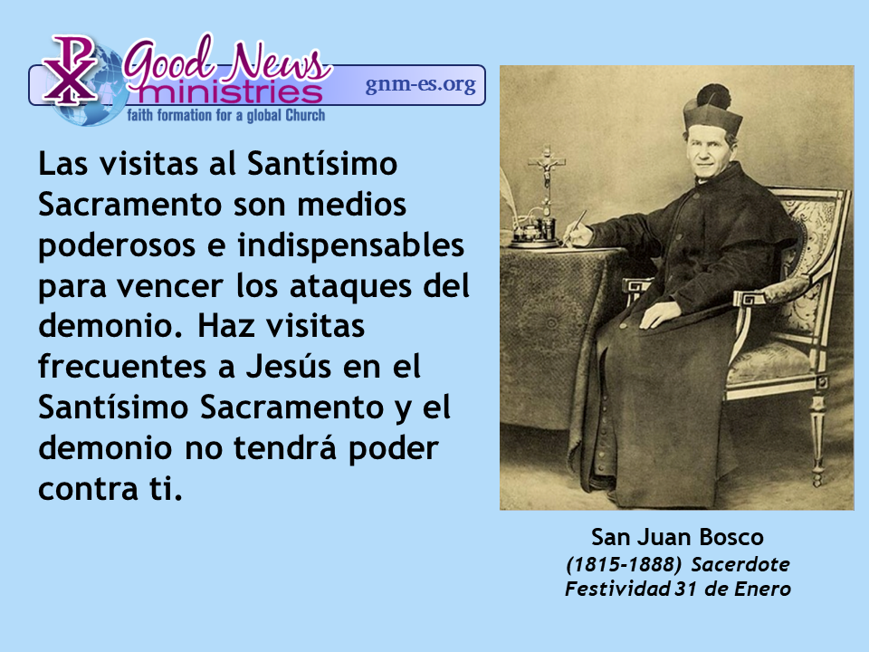Las visitas al SantÃsimo Sacramento son medios poderosos e indispensables para vencer los ataques del demonio. Haz visitas frecuentes a Jesús en el SantÃsimo Sacramento y el demonio no tendrá poder contra ti.