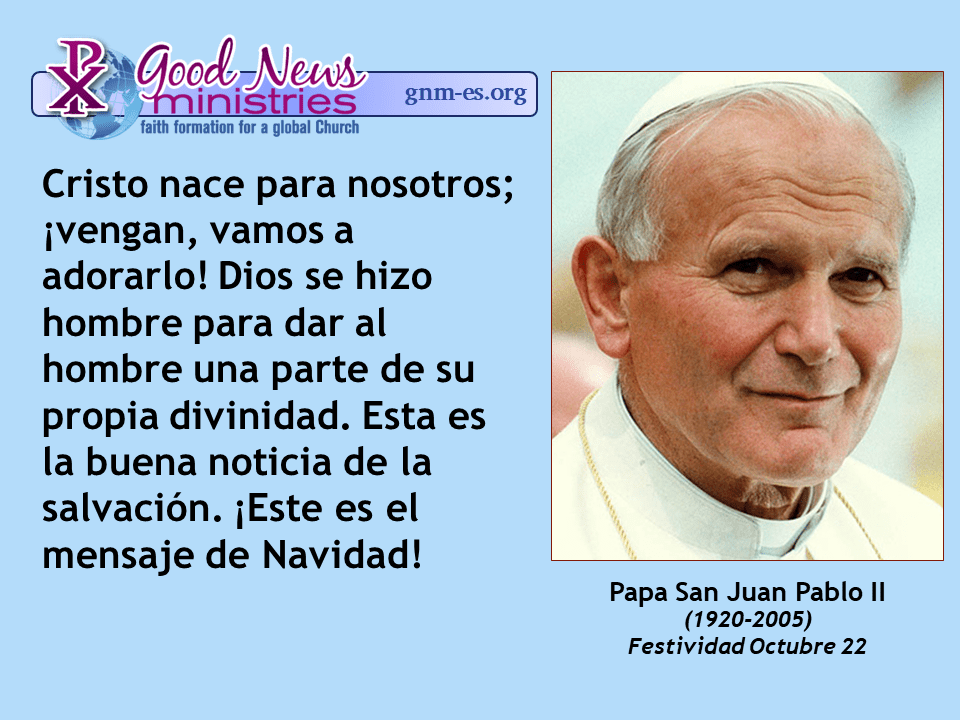 Cristo nace para nosotros; ¡vengan, vamos a adorarlo! Dios se hizo hombre para dar al hombre una parte de su propia divinidad. Esta es la buena noticia de la salvación. ¡Este es el mensaje de […] Read More