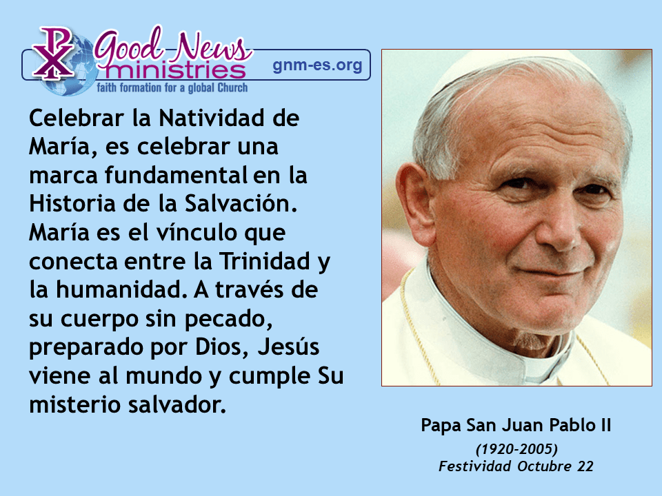 Celebrar la Natividad de MarÃa, es celebrar una marca fundamental en la Historia de la Salvación. MarÃa es el vÃnculo que conecta entre la Trinidad y la humanidad. A través de su cuerpo sin pecado, […] Read More