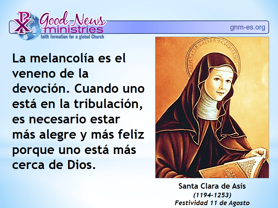 La melancolía es el veneno de la devoción. Cuando uno está en la tribulación, es necesario estar más alegre y más feliz porque uno está más cerca de Dios.