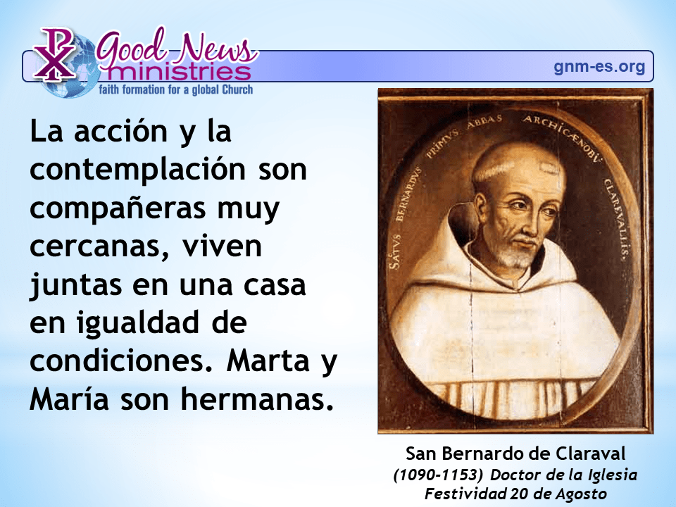 La acción y la contemplación son compañeras muy cercanas, viven juntas en una casa en igualdad de condiciones. Marta y María son hermanas.