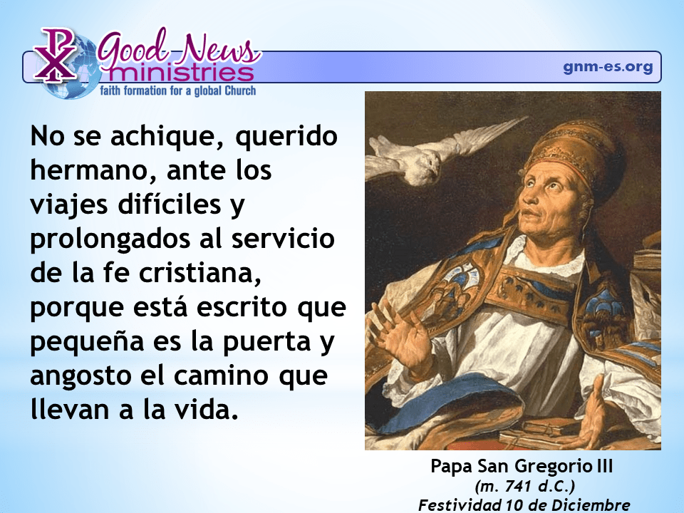 No se achique, querido hermano, ante los viajes difÃciles y prolongados al servicio de la fe cristiana, porque está escrito que pequeña es la puerta y angosto el camino que llevan a la vida.