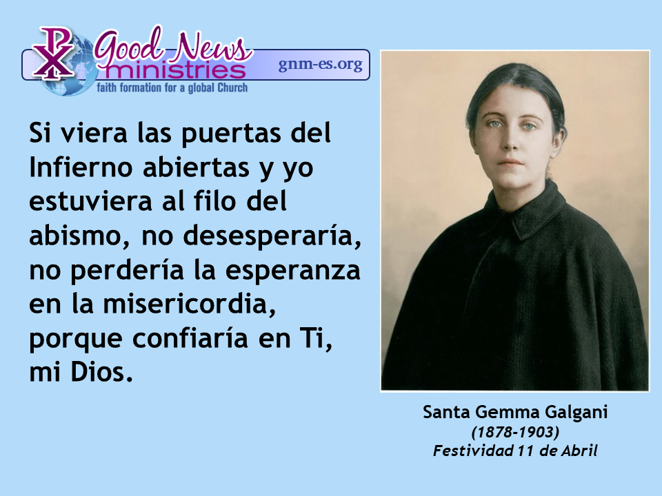 Si viera las puertas del infierno abiertas y yo estuviera al borde del abismo, no me desesperaría, no perdería la esperanza de la misericordia porque confiaría en ti, mi Dios.