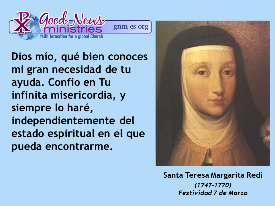 Dios mío, qué bien conoces mi gran necesidad de tu ayuda. Confía en tu infinita misericordia y siempre lo haré, independientemente del estado espiritual en el que pueda encontrarme. (1747-1770) Festividad 7 de Marzo