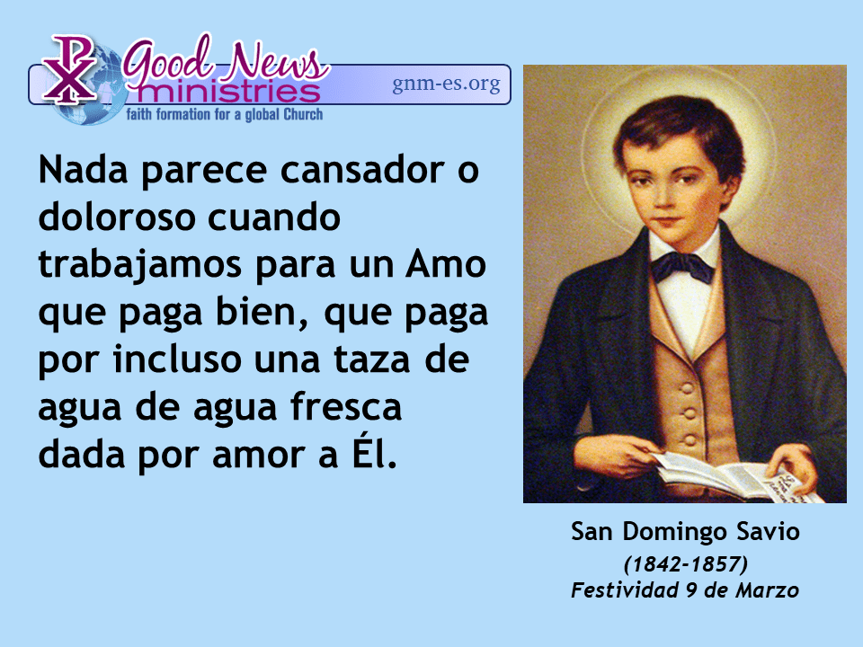 Nada parece molesto o doloroso cuando trabajas para un Amo que paga bien, que recompensa, incluso, una taza de agua frÃa dada por amor a él. (1842-1857) Festividad 9 de Marzo
