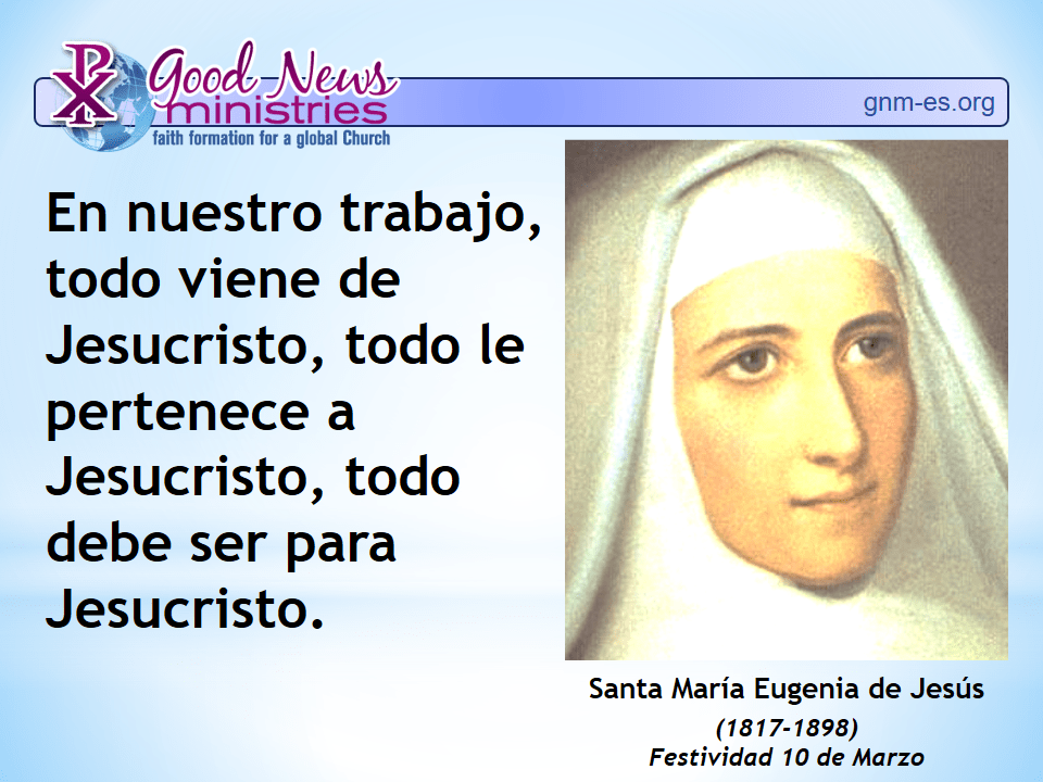 En nuestro trabajo, todo viene de Jesucristo, todo le pertenece a Jesucristo, todo debe ser para Jesucristo. (1817-1898) Festividad 10 de Marzo