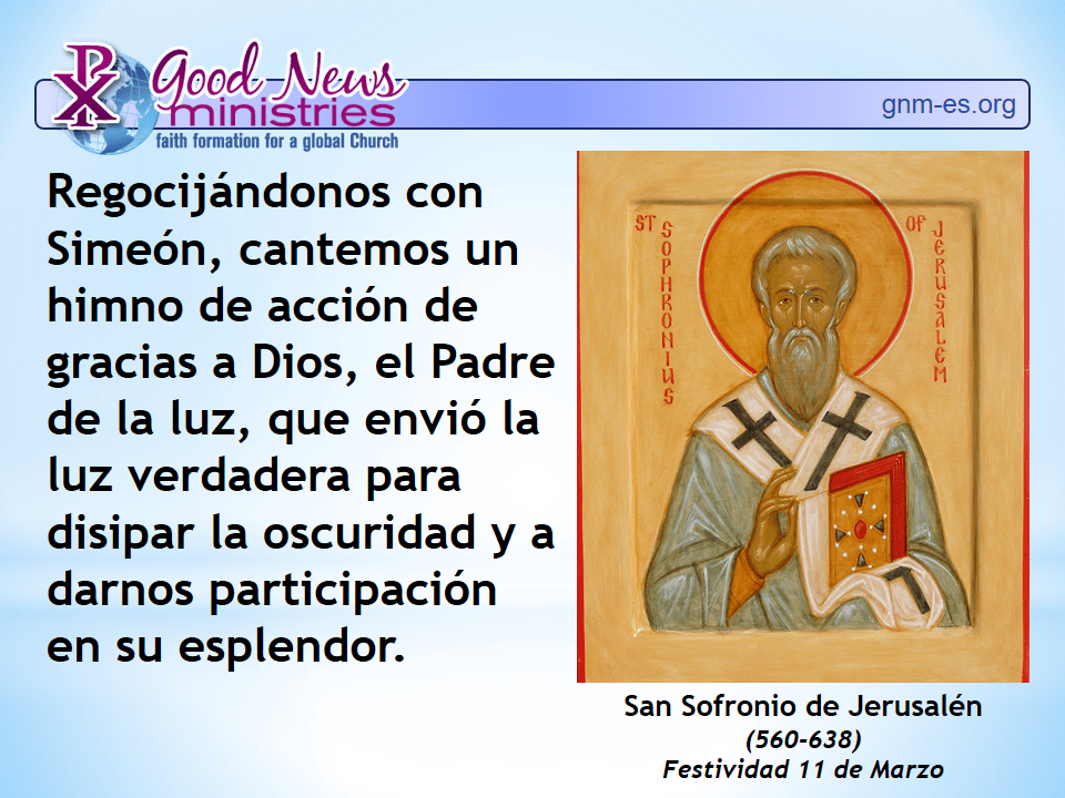 Regocijéndonos con Simeón, cantemos un himno de acción de gracias a Dios, el Padre de la luz, que envió la luz verdadera para disipar la oscuridad y a darnos participación en su esplendor. (560-638) Festividad […] Read More