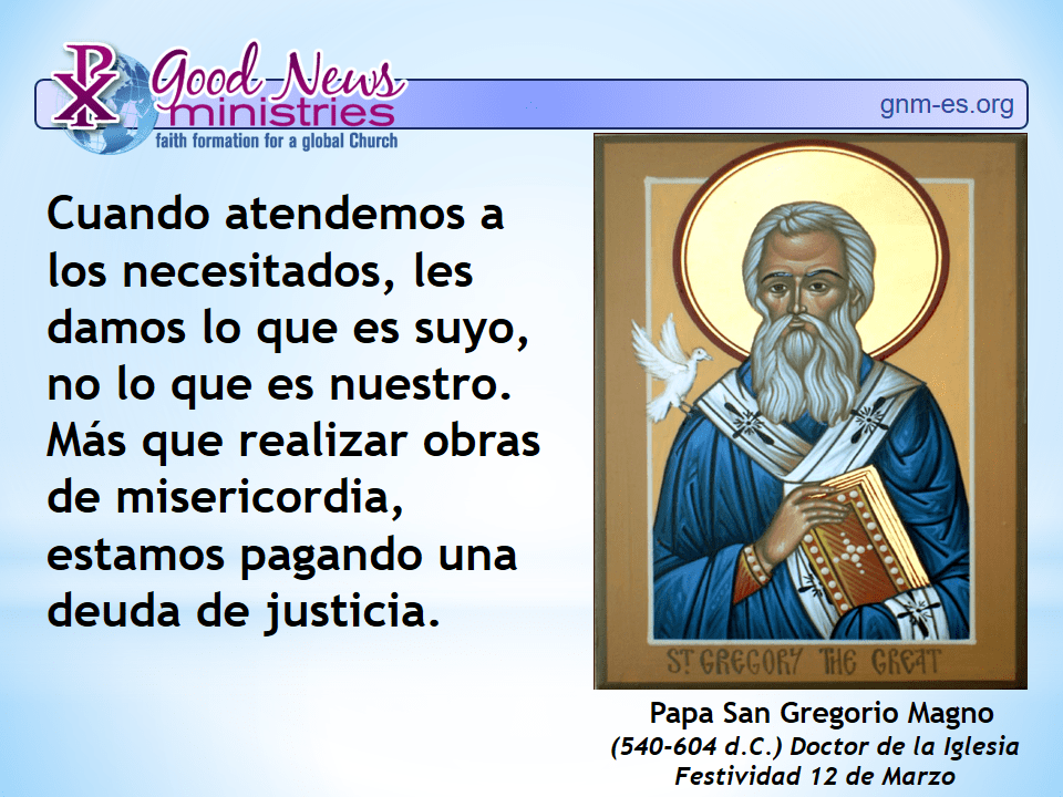Cuando atendemos a los necesitados, les damos lo que es suyo, no lo que es nuestro. Más que realizar obras de misericordia, estamos pagando una deuda de justicia. (540-604) Doctor de la Iglesia. Festividad 12 […] Read More