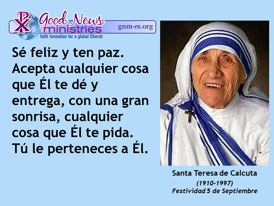 Sé feliz y ten paz. Acepta cualquier cosa que él te dé y entrega, con una gran sonrisa, cualquier cosa que él te pida. Tú le perteneces a él.