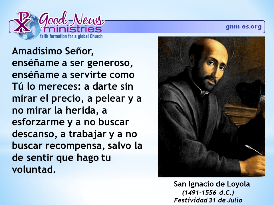 AmadÃsimo Señor, enséñame a ser generoso, enséñame a servirte como Tú lo mereces: a darte sin mirar el precio, a pelear y a no mirar la herida, a esforzarme y a no buscar descanso, a […] Read More