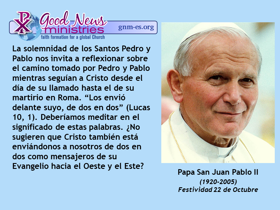 La solemnidad de los Santos Pedro y Pablo nos invita a reflexionar sobre el camino tomado por Pedro y Pablo mientras seguÃan a Cristo desde el dÃa de su llamado hasta el de su martirio […] Read More