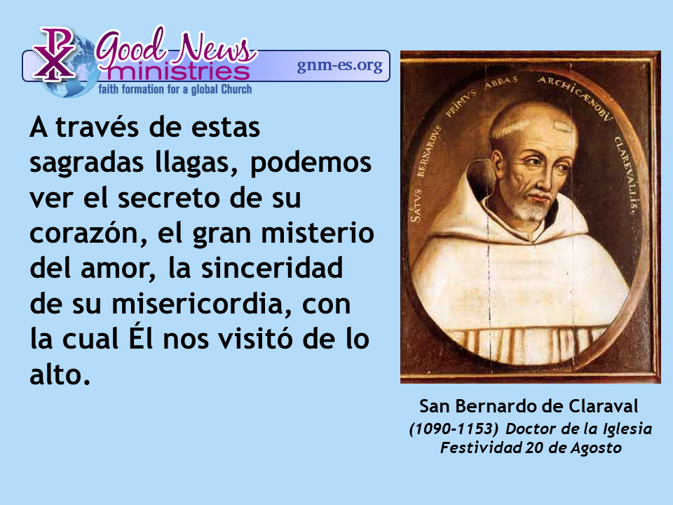 A través de estas sagradas llagas, podemos ver el secreto de su corazón, el gran misterio del amor, la sinceridad de su misericordia, con la cual Él nos visitó de lo alto.