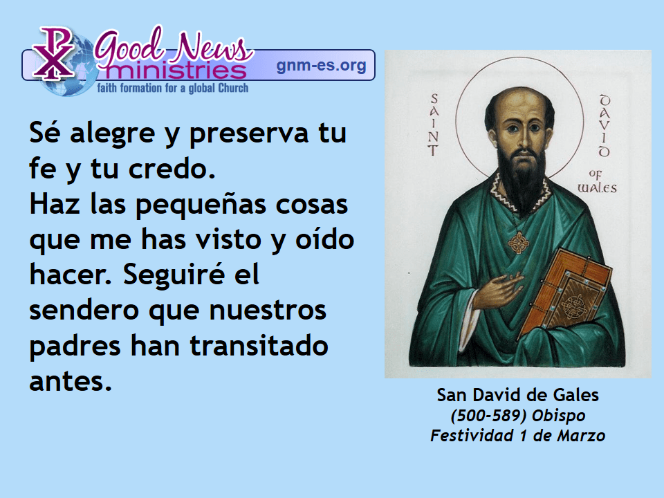 Sé alegre y preserva tu fe y tu credo. Haz las pequeñas cosas que me has visto y oÃdo hacer. Seguiré el sendero que nuestros padres han transitado antes. (500-589 d.C.) Obispo. Festividad 1 de […] Read More