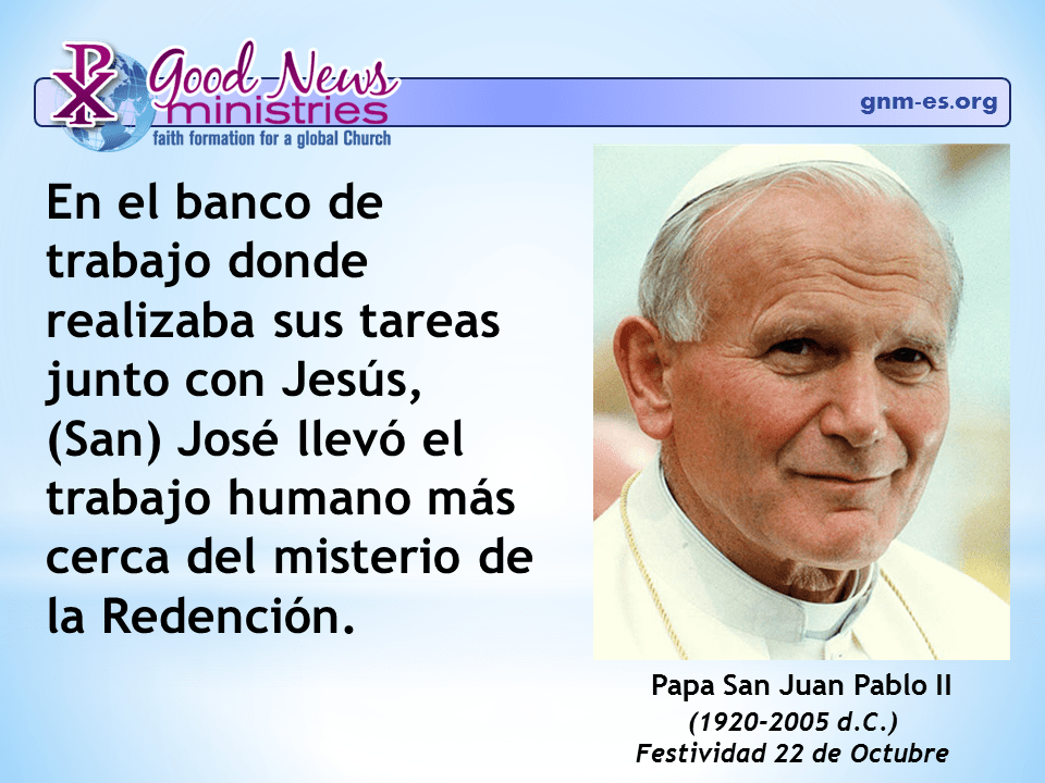 En el banco de trabajo donde realizaba sus trabajos junto con Jesús, (San) José llevó el trabajo humano más cerca del misterio de la Redención. (1920-2005 A.D.) Feast day October 22. For the Feast of […] Read More