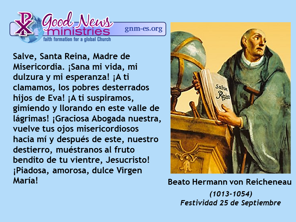 Salve, Santa Reina, Madre de Misericordia. ¡Sana mi vida, mi dulzura y mi esperanza! ¡A ti clamamos, los pobres desterrados hijos de Eva! ¡A ti suspiramos, gimiendo y llorando en este valle de lágrimas! ¡Graciosa […] Read More