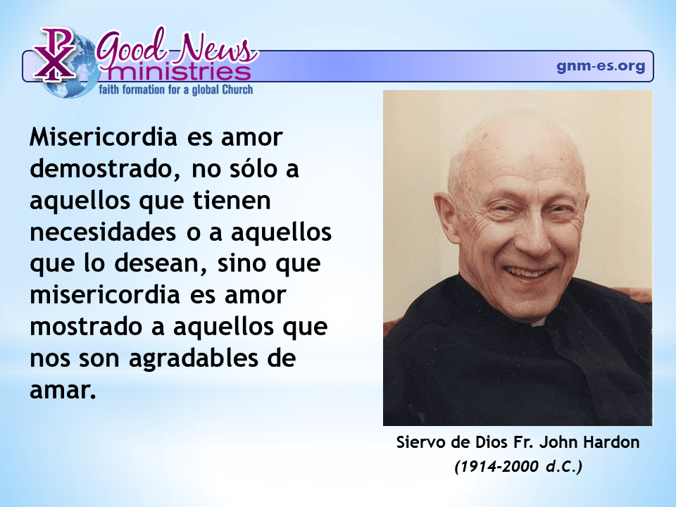 Misericordia es amor demostrado no s�lo a aquellos que tienen necesidades o a aquellos que lo desean, sino que misericordia es amor mostrado a aquellos que nos son agradables de amar.